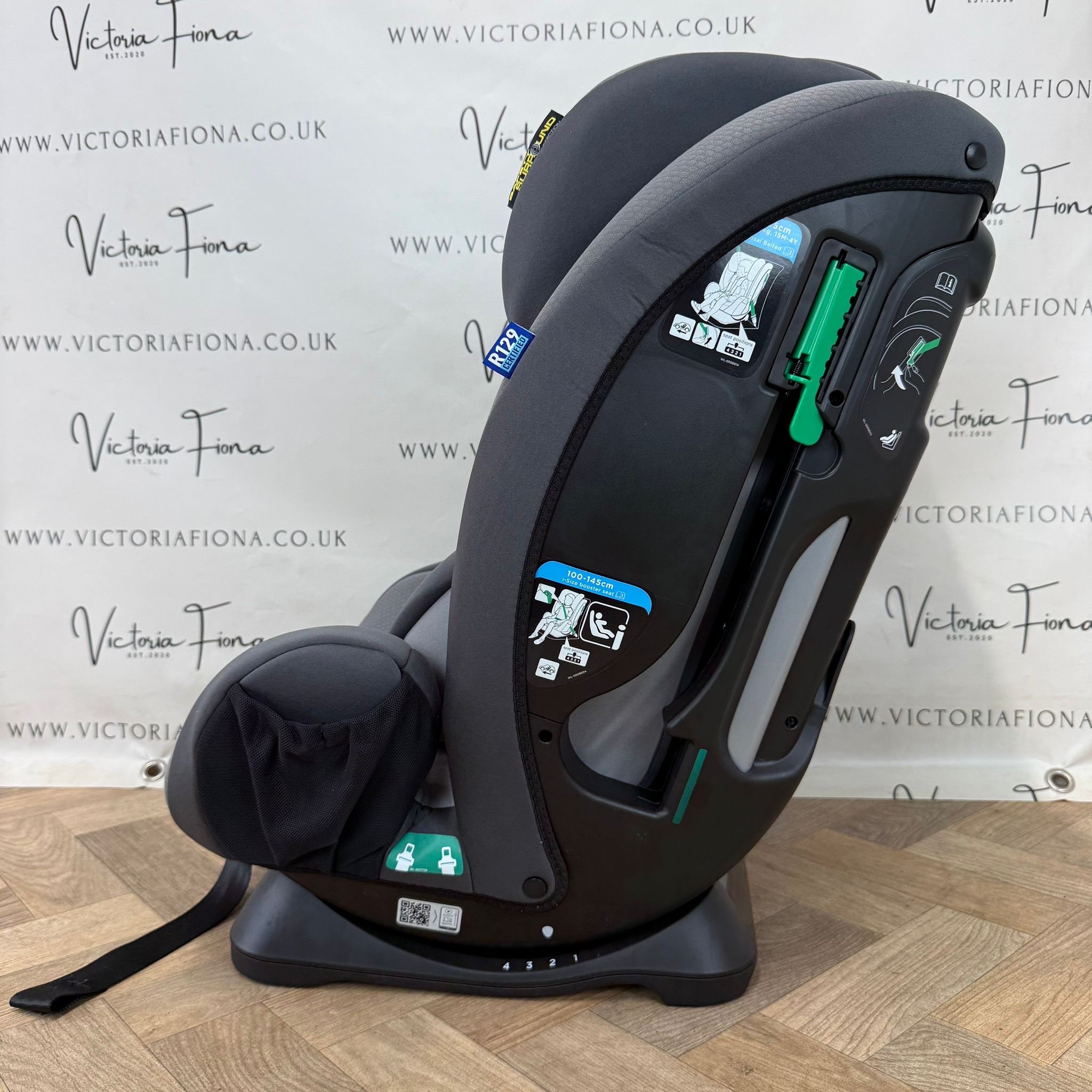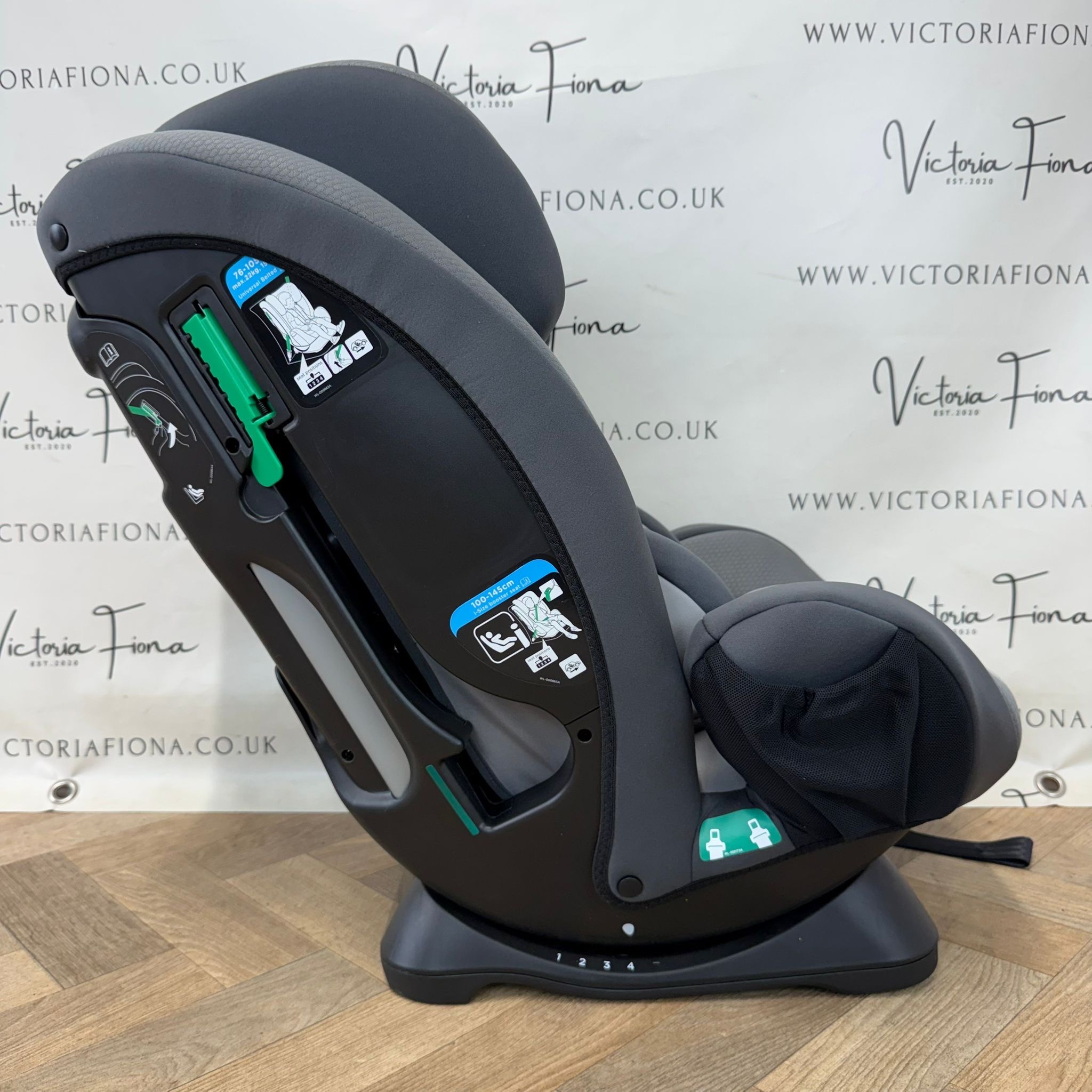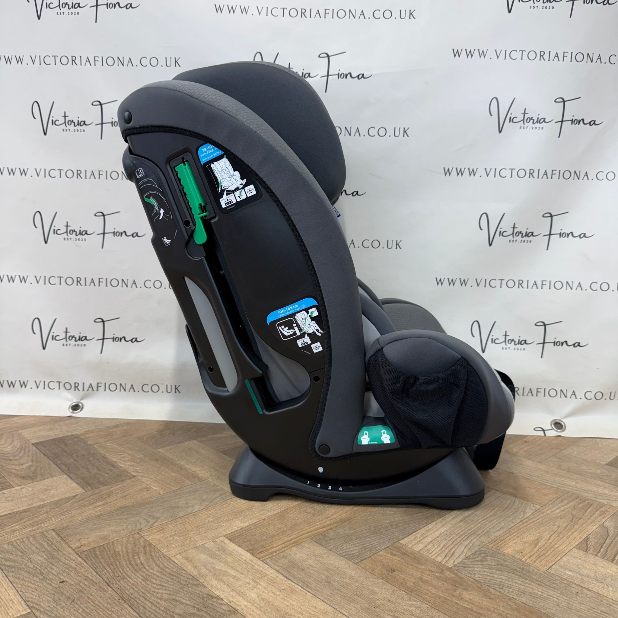This forward-facing car seat transitions from a harness booster (76–105 cm) to a highback booster (100–145 cm) for extended use.