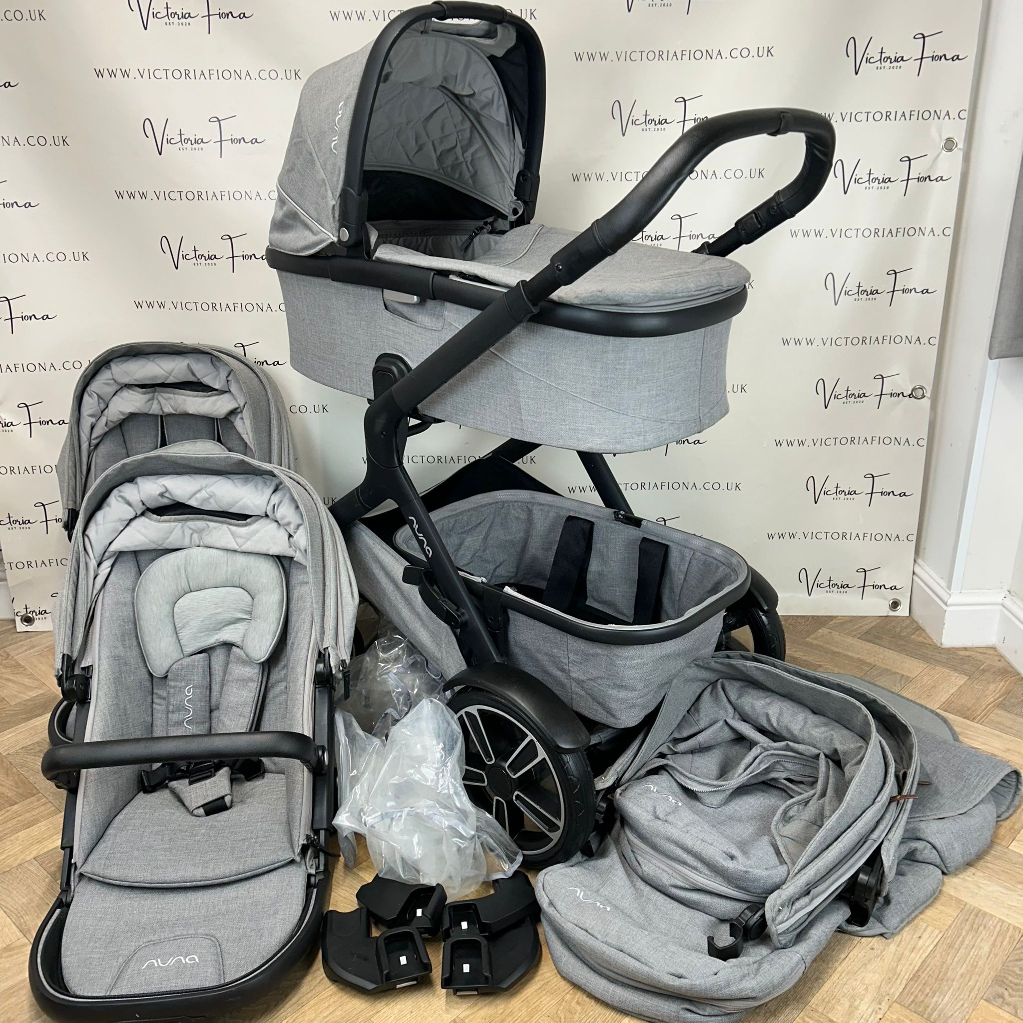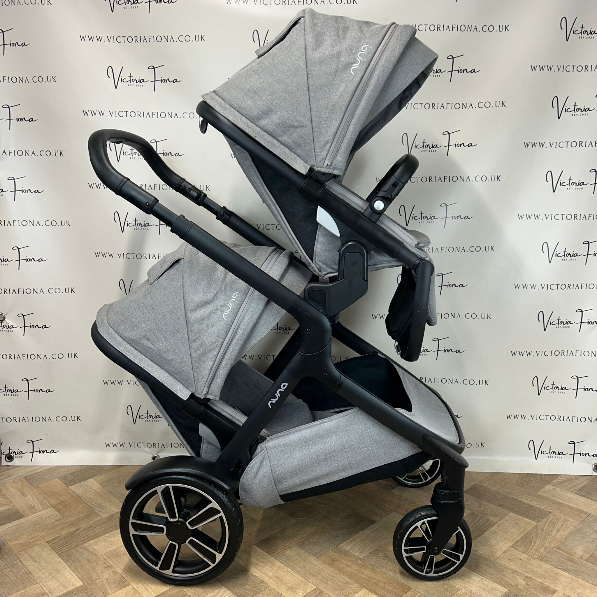 - PRELOVED Nuna Demi Grow Double Pushchair – Carrycot & 2 Seats – Frost Grey